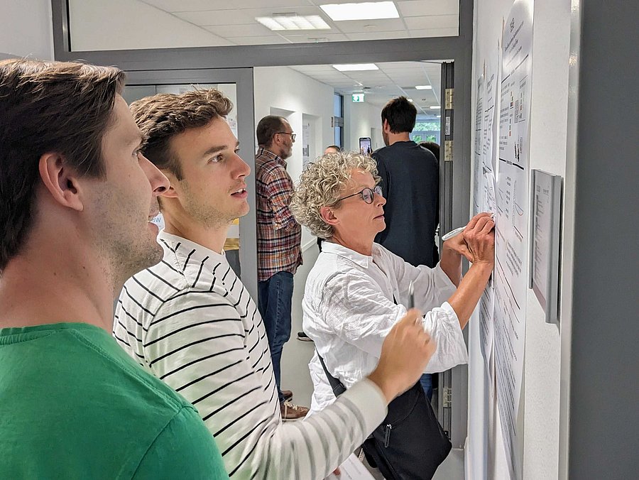 Zunächst hatten wir Laura Platte vom CLS der RWTH Aachen University zu Gast, die uns einen interessanten Input zum Thema „Visualisierungen in der Wissenschaft verstehen und einsetzen“ gab. Dabei haben wir viel mitgenommen angefangen von der Sinnhaftigkeit von graphischen Elementen in der Wissenschaftskommunikation bis hin zu Tipps zur Gestaltung von Postern. Nach der Mittagspause ging es dann um unsere Poster – unser gesamter Flur hing voll mit unseren Postern und wir konnten uns bei einer Poster Rallye rege austauschen. Am Ende stimmten wir über das beste Poster ab, nahmen aber vorallem viele Anknüpfungspunkte, Synergiepotenziale und Anregungen durch gute Gespräche mit in den Feierabend. Daran können wir in unserer weiteren Arbeit anknüpfen!