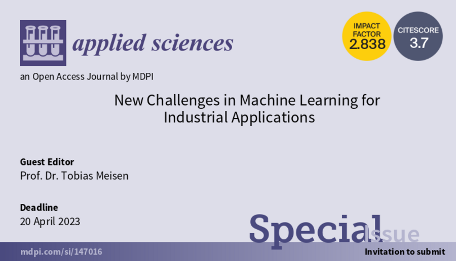 Call for Papers: Prof. Dr.-Ing. Tobias Meisen ist Gasteditor der Sonderausgabe von Applied Science (MDPI)
