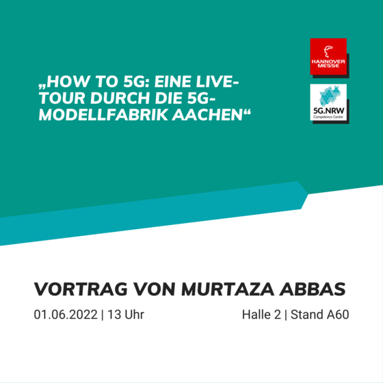 Darüber hinaus laden wir Sie herzlich zu dem Vortrag von Murtaza Abbas, FIR an der RWTH Aachen, „How to 5G: Eine Live-Tour durch die 5G-Modellfabrik Aachen“ mit einer interaktiven Führung durch die reale Produktionsumgebung eines eigenständigen Auftragsfertigers ein. Hierbei werden neben dem Aufbau eines privaten 5G-Campusnetzes diverse reale 5G-Anwendungsfälle und Demonstratoren vorgestellt und live vorgeführt. Nehmen Sie Teil, stellen Sie Ihre Fragen und freuen Sie sich auf eine interaktive Führung auf dem RWTH Aachen Campus, Europas größtem 5G-Forschnungsnetz.