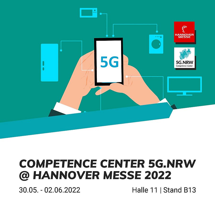 Das Team des Competence Center 5G.NRW ist vom 30.05. bis 02.06.2022 auf der Hannover Messe 2022 mit dabei!