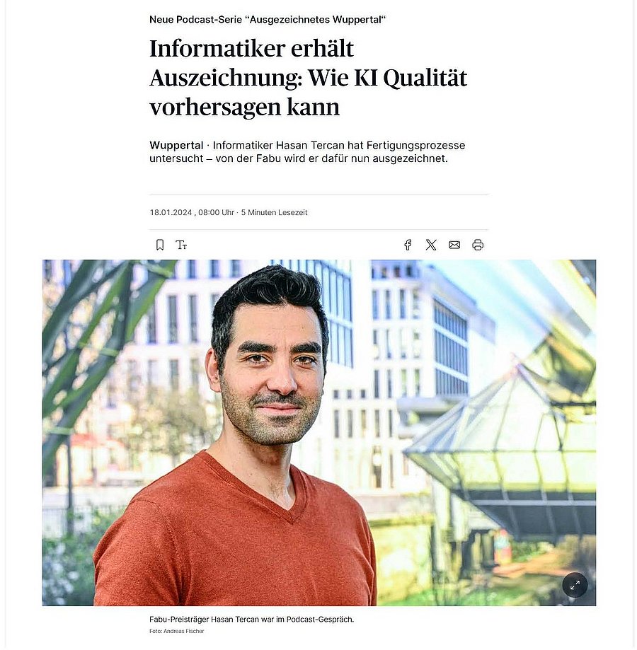 Auszeichnung für Hasan Tercan: Wie KI Qualität vorhersagen kann