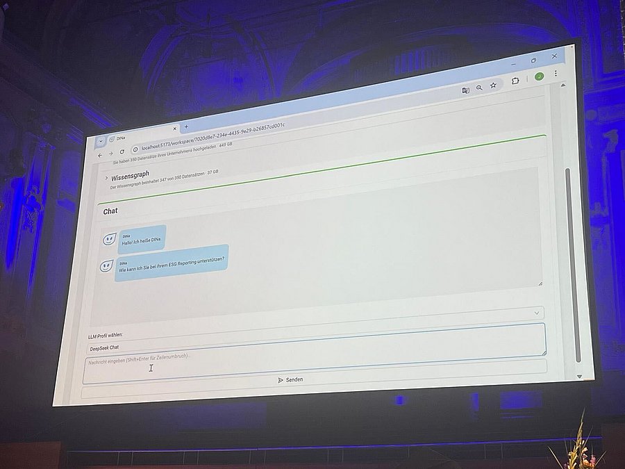 Hier setzt DINa an: Der anwendungsfreundliche KI-Assistent ermöglicht es, ESG-bezogene Anfragen in Alltagssprache zu formulieren. DINa versteht diese, navigiert durch komplexe, oft heterogene Datenstrukturen und ermittelt automatisiert die relevanten Kennzahlen. Der besondere Mehrwert liegt in der semantischen Tiefe: DINa analysiert nicht nur einzelne Datenpunkte, sondern erkennt auch deren Bedeutungszusammenhänge. Möglich wird dies durch den Einsatz standardisierter Ontologien und semantischer Annotation. So entstehen fundierte ESG-Auswertungen – ganz ohne IT-Vorkenntnisse.