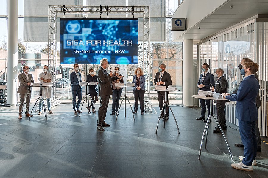 „Die digitale Transformation ist im Gesundheitssektor angekommen. Die sehr geringen Reaktionszeiten der 5G-Technologien ermöglichen innovative und lebensrettende medizinische Lösungen“, lobte Pinkwart den zukunftsträchtigen Charakter des Projektes. Er sei überzeugt, dass das Projekt Giga4Health die Arbeit am Uniklinikum Düsseldorf maßgeblich weiterentwickeln und eine enorme Strahlkraft auf die Digitalisierung der Krankenhäuser in NRW und darüber hinaus habe. Es habe mit seinem starken Konsortium das Potenzial, auch europaweit ein Leuchtturm für den Einsatz von 5G in Krankenhäusern zu werden.