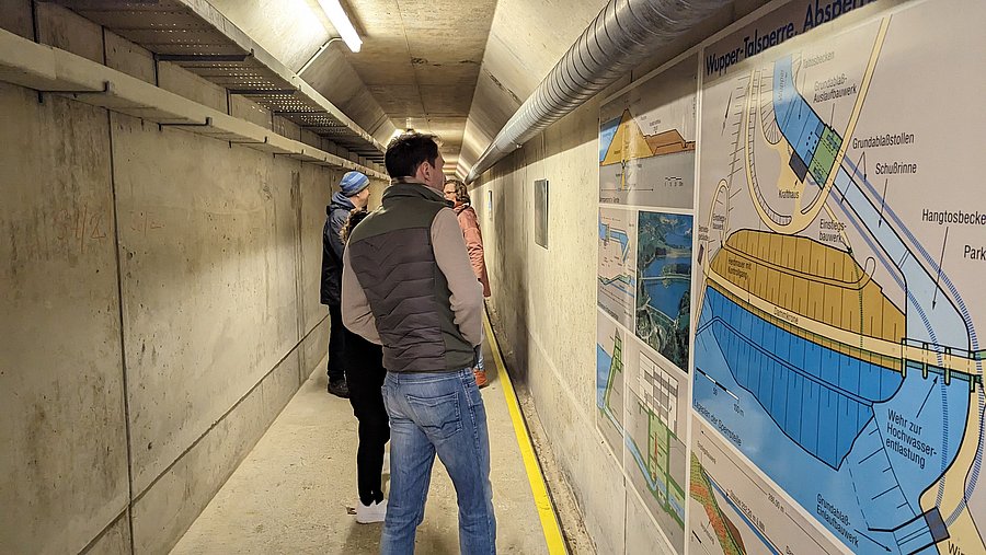 Dort unten wurden ihnen die Abläufe und Funktionen der Talsperre gezeigt, beispielsweise wird dort die Dichte der Staumauer gemessen. Da die Wupper-Talsperre noch recht jung ist, ist sie im Vergleich zu älteren Staumauern recht dicht.