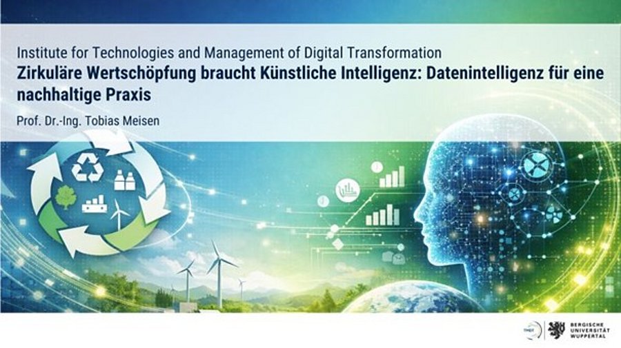 Prof. Dr.-Ing. Tobias Meisen wurde eingeladen, eine Ringvorlesung zum Thema „Zirkuläre Wertschöpfung braucht Künstliche Intelligenz – Datenintelligenz für eine nachhaltige Praxis“ zu halten.