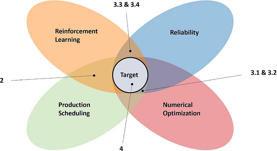 Die Survey Publikation „On Reliability of Reinforcement Learning based Production Scheduling Systems: A Comparative Survey“ Waubert de Puiseau et al. untersucht Publikationen, in welchen die Anwendung von Deep Reinforcement Learning (DRL) auf reale Produktionsplanungsprobleme adressiert wird. Die Autoren stellen fest, dass spezifische Anforderungen der realen Anwendungsfelder oft nicht berücksichtigt werden. Sie definieren dazu zuverlässige Bewertungskriterien für die Produktionsplanung und identifizieren vielversprechende Forschungsrichtungen für die zukünftige Arbeit. Der Beitrag der Studie besteht darin, eine Brücke zwischen dem numerischen Optimierungsbereich und dem DRL-Bereich zu schlagen und eine solide Grundlage für die Entwicklung zuverlässiger DRL-basierter Produktionsplanungsverfahren zu schaffen.