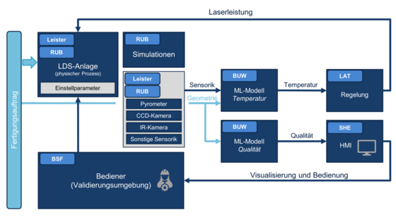 Ziel des Projekts LAIserWeld ist die Entwicklung eines KI-basierten virtuellen Temperatursensors zur Optimierung der Prozessregelung beim Laserdurchstrahlschweißen sowie eines Systems zur onlinefähigen Qualitätsabschätzung der Schweißnaht. Der virtuelle Sensor soll die thermische Leistungsumsetzung präzise erfassen und als Eingangsgröße für die Regelung dienen. Parallel wird ein kamerabasiertes Prüfverfahren entwickelt, das visuell verständlich Rückmeldung zur Schweißnahtqualität gibt. Beide Systeme werden in einer realen Produktionsumgebung validiert.