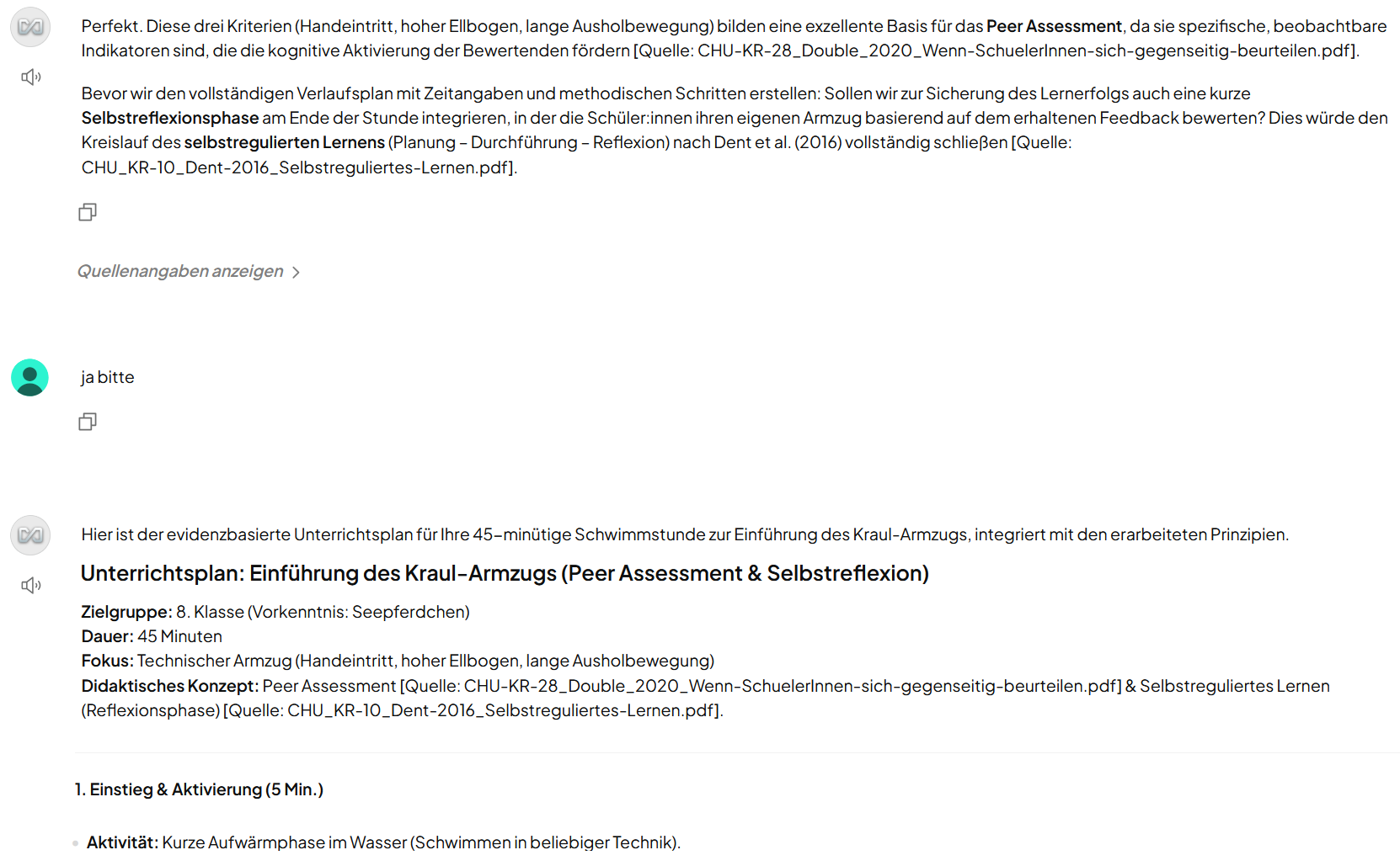 Konzipiert und in Teilen erprobt wird ein KI-Labor für Lehramtsstudierende in der Masterphase, in dem sie sich systematisch mit verschiedenen KI-Tools auseinandersetzen, diese in Bezug zu fachlichen Problemen setzen, evaluieren und reflektieren. Damit wird zum einen an die Erfahrungen der Studierenden aus dem Digitalmodul angeknüpft, zum anderen der gezielte KI-Kompetenzaufbau in Hinblick auf ihre späteren beruflichen Anforderungen gefördert. Der Fokus liegt auf KI-Tools für das Planen von Unterricht, die Entwicklung von Unterrichtsmaterialien sowie das Feedback von Arbeiten, die als besonders relevant für (angehende) Lehrkräfte identifiziert wurden.