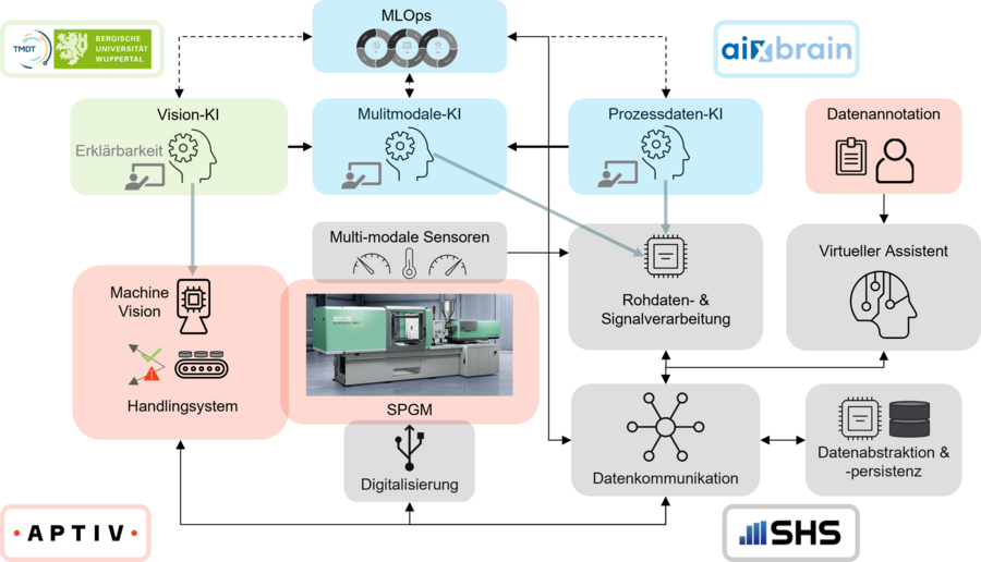 Für das TMDT steht im Zentrum des Projekts die Erforschung generalisierbarer Deep-Learning-Methoden für die visuelle Inspektion von Elastomerbauteilen. Ergänzt wird dies durch die Erforschung multimodaler KI-Ansätze, die Bild- und Prozessdaten gemeinsam auswerten, um robuste Fehlererkennung und Prozesssteuerung zu ermöglichen. Ein besonderer Fokus liegt auf erklärbaren KI-Verfahren (XAI), die die Modelle nachvollziehbar machen und in einem virtuellen Assistenzsystem nutzbar aufbereiten.