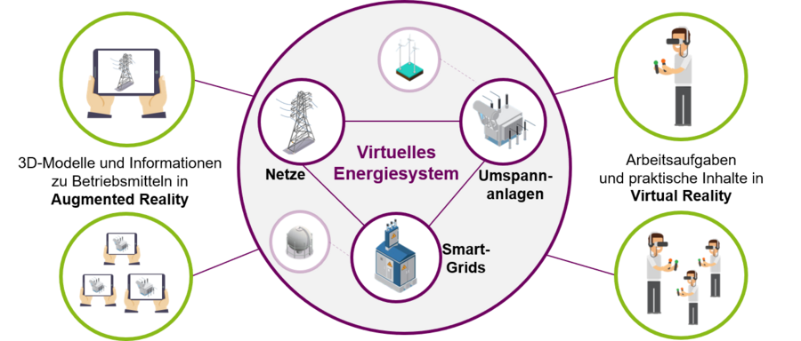 Mithilfe des virtuellen Energiesystems sollen relevante kooperative Lernsituationen geschaffen werden, die im Aus- und Weiterbildungsbereich dazu beitragen, Fach- und Führungskräfte der Energiewirtschaft optimal und effizient zu schulen.
