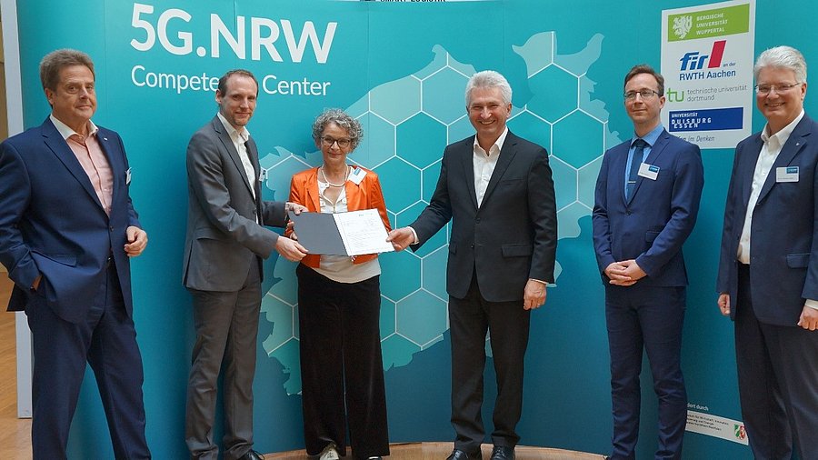 The Competence Center 5G.NRW began its work in June 2019. The consortium, which is funded by the state government of North Rhine-Westphalia, consists of four partners: Under the consortium leadership of SIKoM+ at the University of Wuppertal, the University of Duisburg-Essen, the Technical University of Dortmund and the FIR at RWTH Aachen University are involved. The consortium accompanies the introduction of 5G technology, examines strengths and weaknesses in practice and derives realistic recommendations for the use of the fifth generation of mobile communications in various fields of application. In addition, the Competence Center is responsible for the accompanying scientific research on the 37 state-wide projects from the state government's 5G.NRW funding competition and on the mobile communications coordinators active in the state.